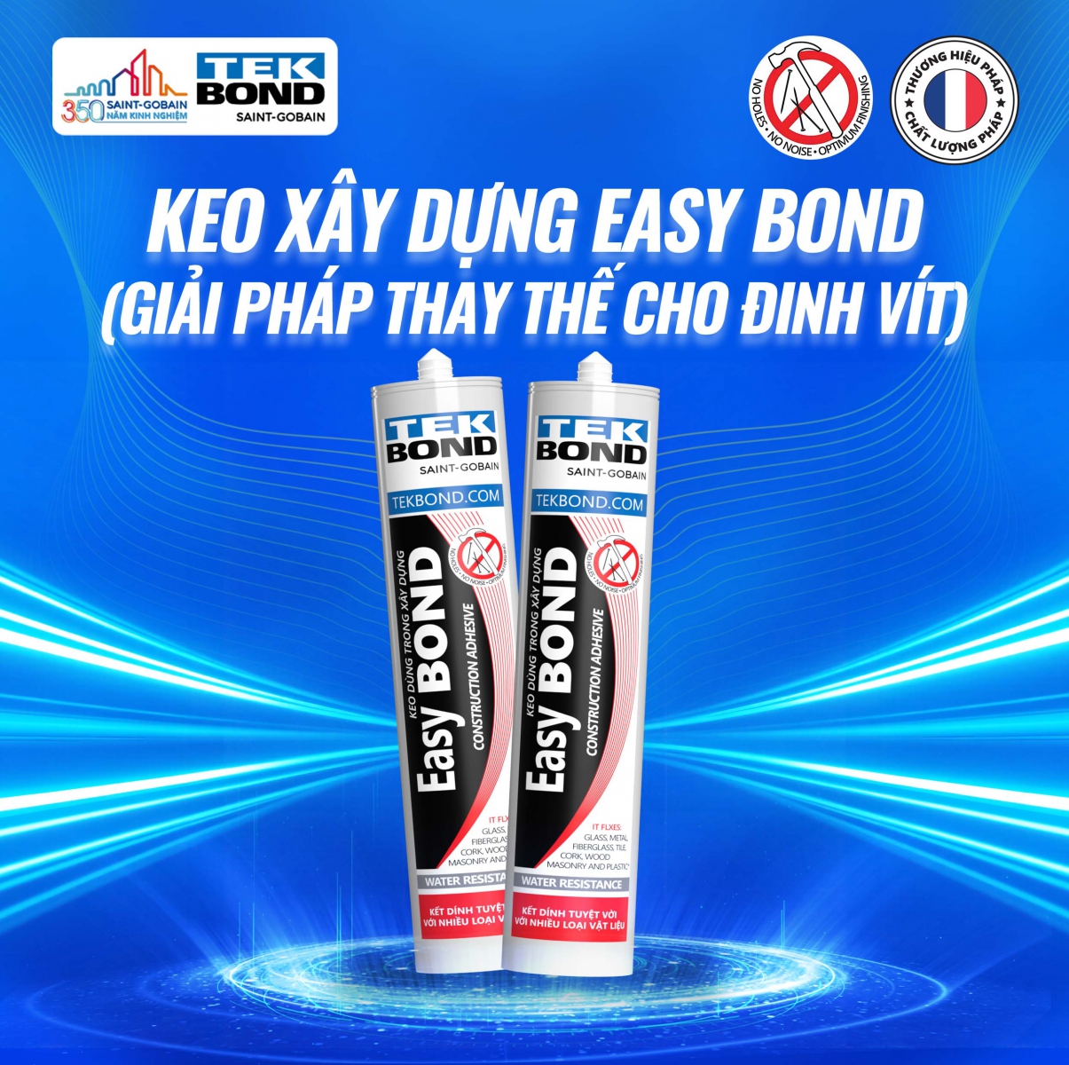 Keo Xây Dựng TekBond là sản phẩm có thể thay thế đinh vít với những vật liệu cần kết dính, cố định như khung gỗ, ván ốp, ván chân tường và các bề mặt xốp khác,...Keo Xây Dựng TekBond được sản xuất bởi tập đoàn Saint-Gobain của Pháp